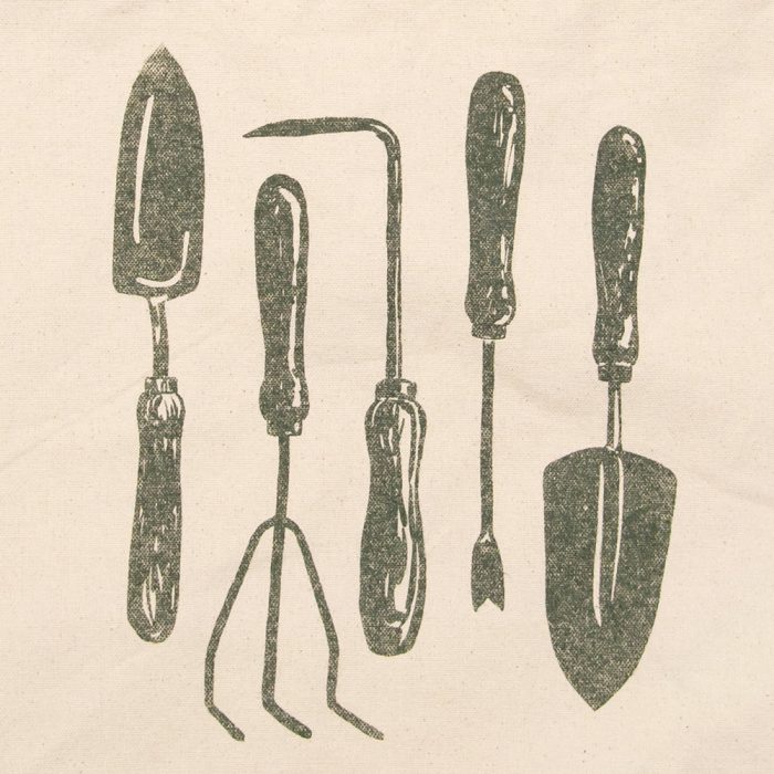 Garden Tools graphic is printed soft-hand style for a shadowy look & feel. Tote is cut from 100% organic cotton canvas and features 2.5″ wide braided shoulder straps and wide bottom gusset. Certified organic & made in the USA.