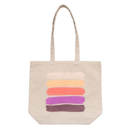 Our raw canvas bags are cut from 100% heavyweight canvas and printed by hand with reclaimed ink. Bag measures 19″