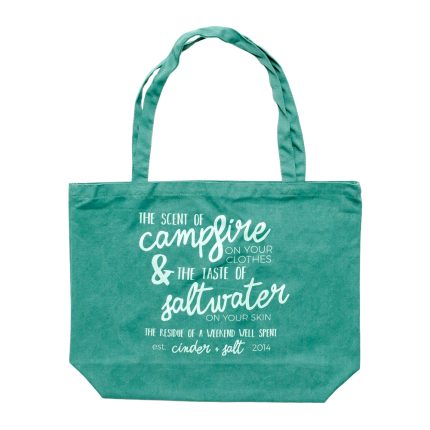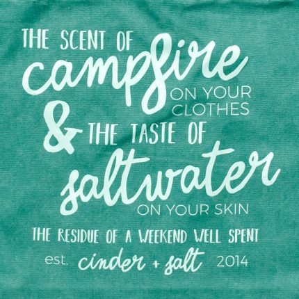 The inspiration for the cinder + salt name, finally emblazoned for the world to see! Our raw canvas bags are